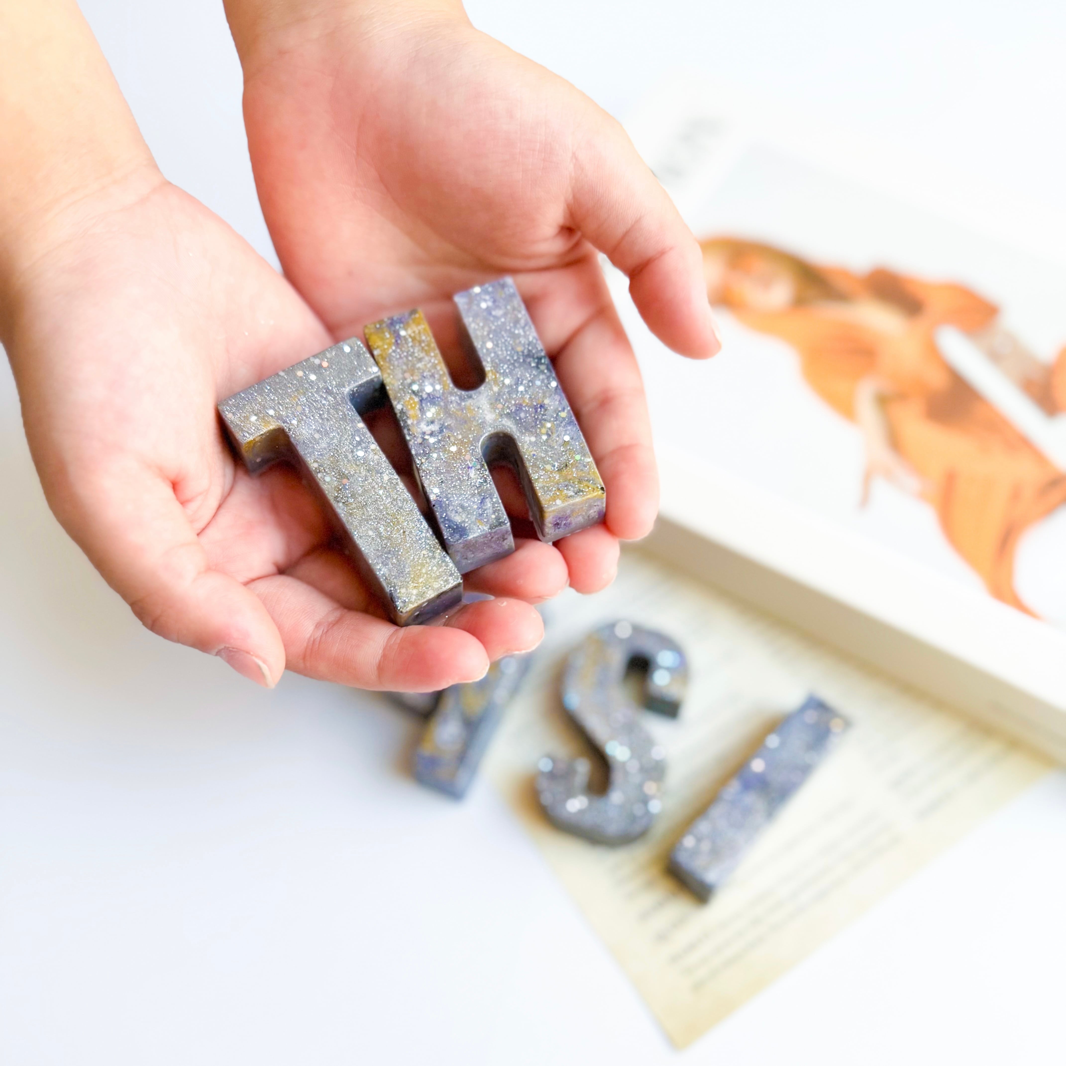 _ _ _ 【Random marble】ランダムマーブル_ _ _ 海外発のカスタムクレヨンといえばこれ! 1文字に3.4色お入れし、パッと目をひく王道な人気カラー。 明るい色~かっこいい色まで入れて仕上げていきますので、たくさんの色に触れることができます✨️ かっこいい色で、かわいい色でなど 好きな色、贈る相手のイメージなどぜひお伝えください♡ グリッターの有無はオプションからお選びいただけます。 使用しているグリッターは、ストローと同じプラスチック素材で、安心安全なものを採用しています♡ 【価格について】 表示価格は 2~5文字のアルファベットクレヨンのセット価格です。 6文字以上の場合、1文字ごとに+400円となります。 【モチーフクレヨンについて】 お名前が2~4文字の場合は、モチーフクレヨンを追加して5文字分になるようにお届けします 例: ・AIちゃん/AOくん → モチーフ3つ追加 ・YUAちゃん → モチーフ2つ追加 ・AINAちゃん → モチーフ1つ追加 ・AKANEちゃん(5文字)→ アルファベットのみ モチーフクレヨンはランダムでお付けしておりますが、 ご希望がある場合は備考欄にてお知らせください✨ 小さめモチーフの場合は、2つお付けすることもございます。